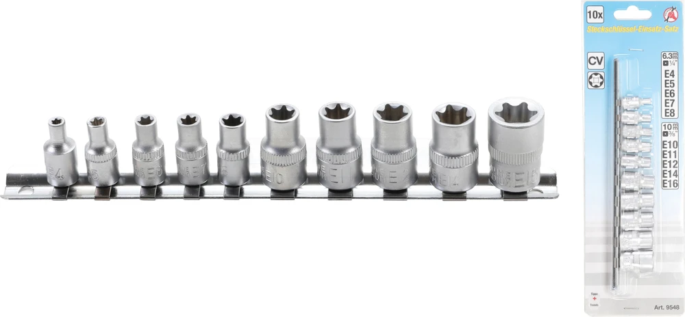 SW E4, E5, E6, E7, E8 - Steckschlüssel-Einsätze E-Profil, Antrieb Innenvierkant 10 mm (3/8″):